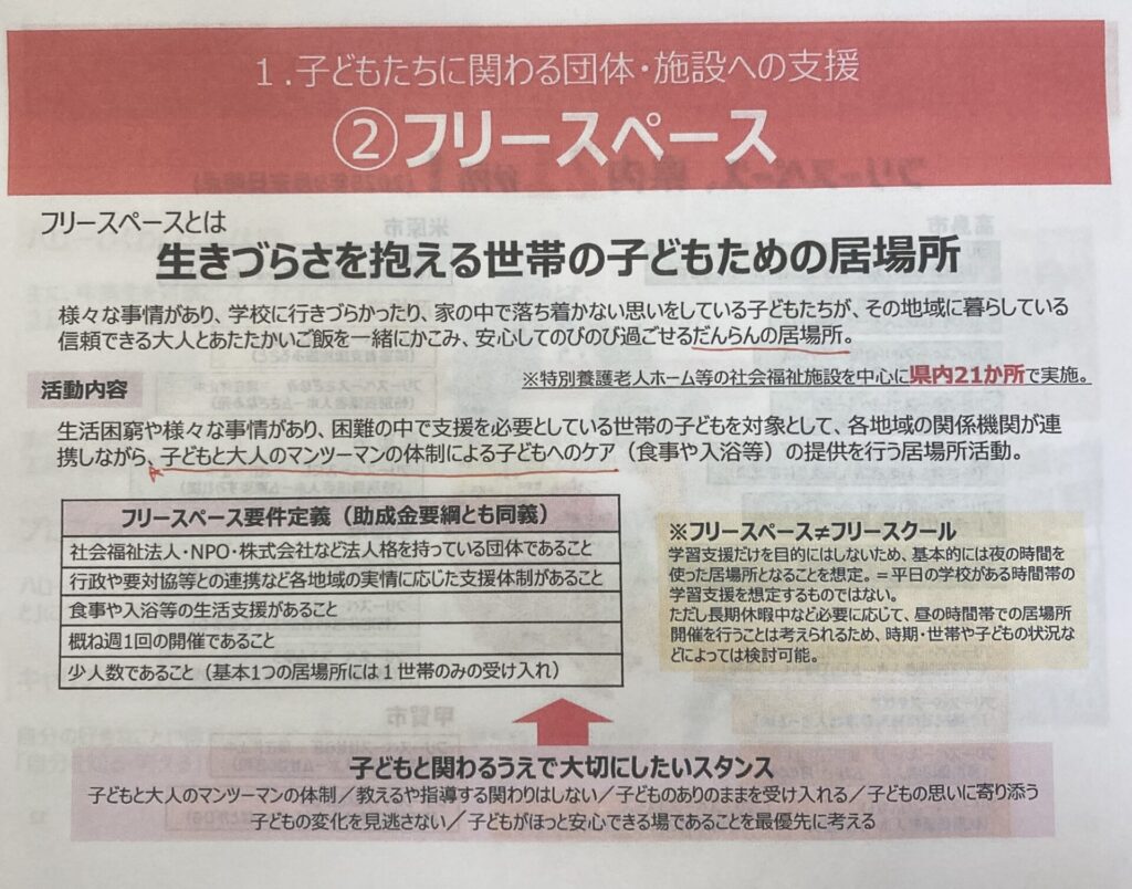 これを数を増やしていくというのは限界もあるとのことで、持続可能な支援の仕組みとすることが課題であると感じました。(スペースを提供してもらって、他の団体が支援に入るというスキームでも検討が進んでいるそうです)