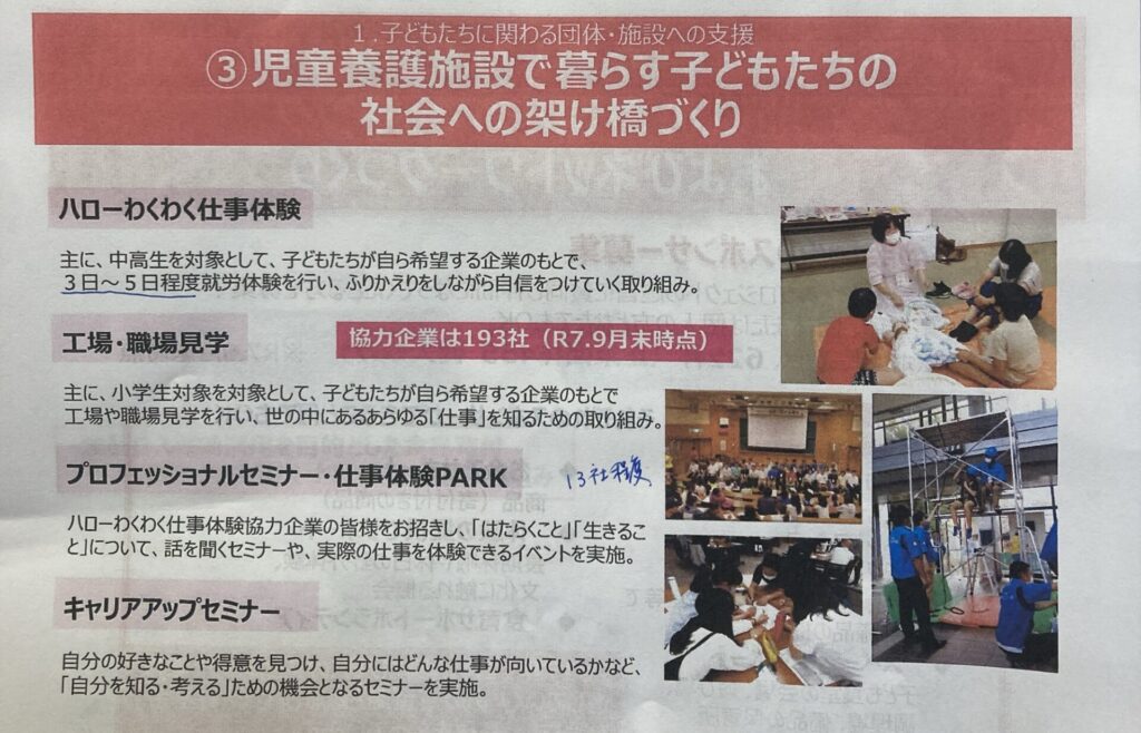これは、児童養護施設で暮らす子どもが企業で職業体験を行い、自立への基礎を育む取り組みです。