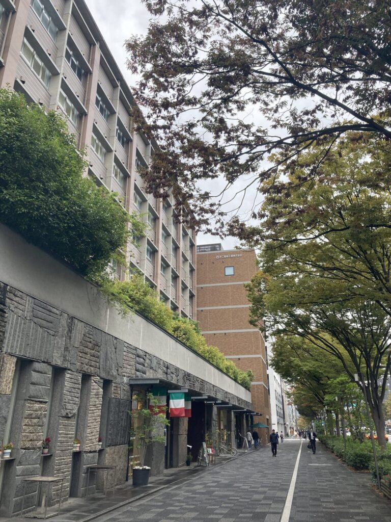 面する通りが広く、ゆとりのある歩行空間にけやきの街路樹など非常に気持ちの良い空間でした。