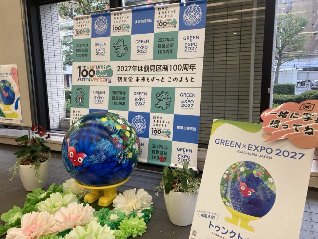 区役所1階には、100周年×横浜グリーンエクスポ(トゥンクトゥンク)のコラボも